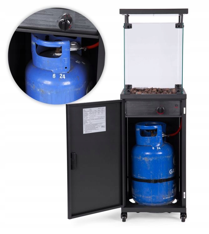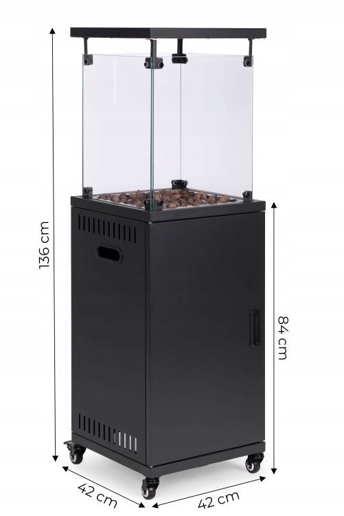 Ogrzewacz gazowy o mocy 13 kW zapewnia efektywne ogrzewanie przestrzeni na świeżym powietrzu. Dzięki wykorzystaniu kamieni wulkanicznych, tworzy widowiskowe palenisko, co dodaje elegancji każdemu otoczeniu.
